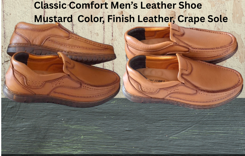 Casual Leather Shoe – Mustard Color | Finish Leather, Crape Sole & Doctor Insole | Code: FCMC 805
