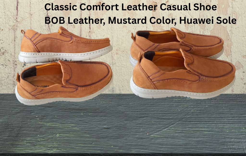 Casual Leather Shoe – Mustard Color | Bob Leather, Huawei Sole & Doctor Insole | Code: BCMH 810